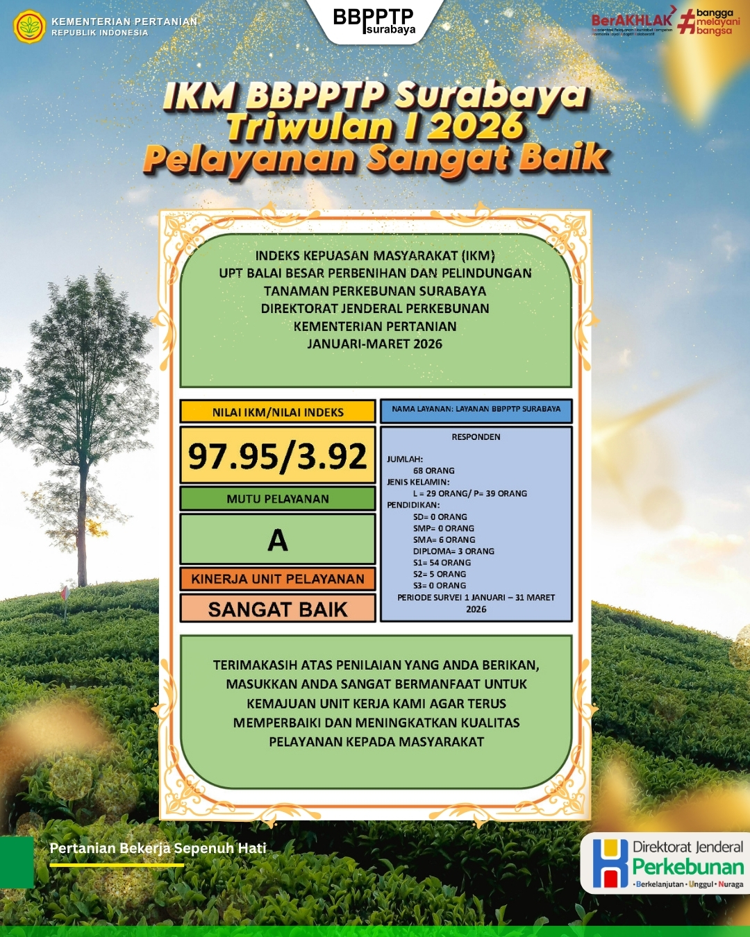 IKM BBPPTP Surabaya Triwulan I 2026: Pelayanan Sangat Baik